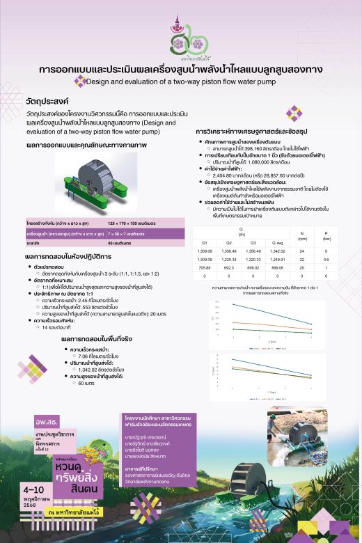 การออกแบบและประเมินผลเครื่องสูบน้ำพลังน้ำไหลแบบลูกสูบสองทาง