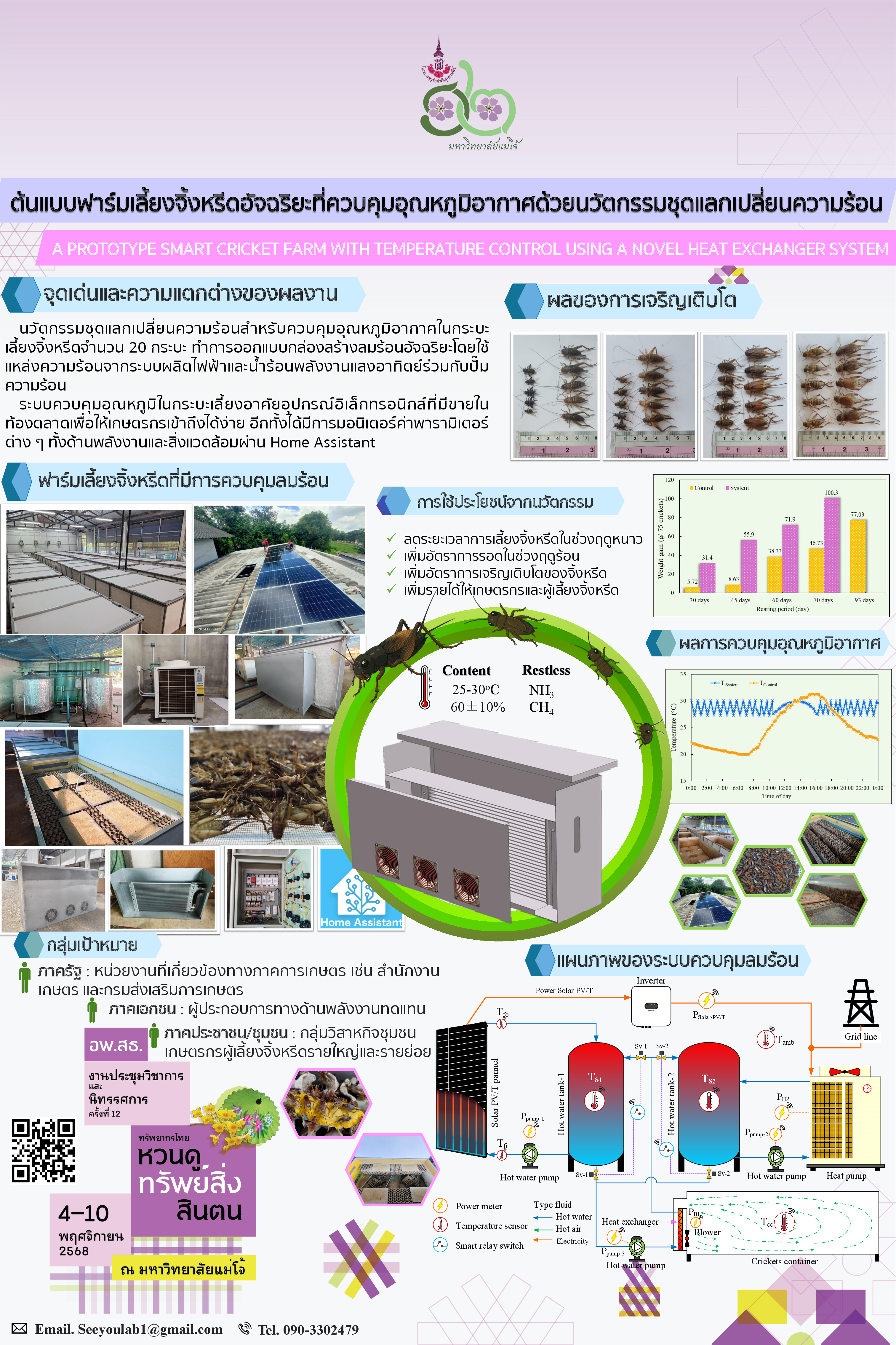 ต้นแบบฟาร์มเลี้ยงจิ้งหรีดอัจฉริยะที่ควบคุมอุณหภูมิอากาศด้วยนวัตกรรมชุดแลกเปลี่ยนความร้อน