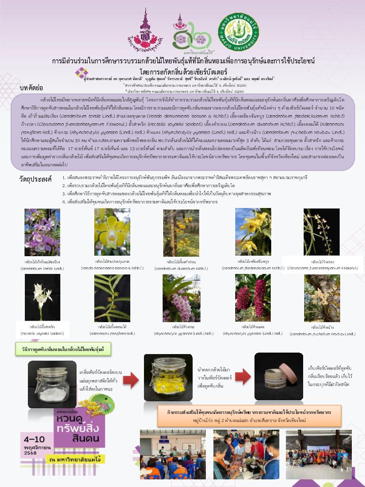 การมีส่วนร่วมในการศึกษารวบรวมกล้วยไม้ไทยพันธุ์แท้ที่มีกลิ่นหอม เพื่อการอนุรักษ์และการใช้ประโยชน์ โดยการสกัดกลิ่นด้วยเชียร์บัตเตอร์