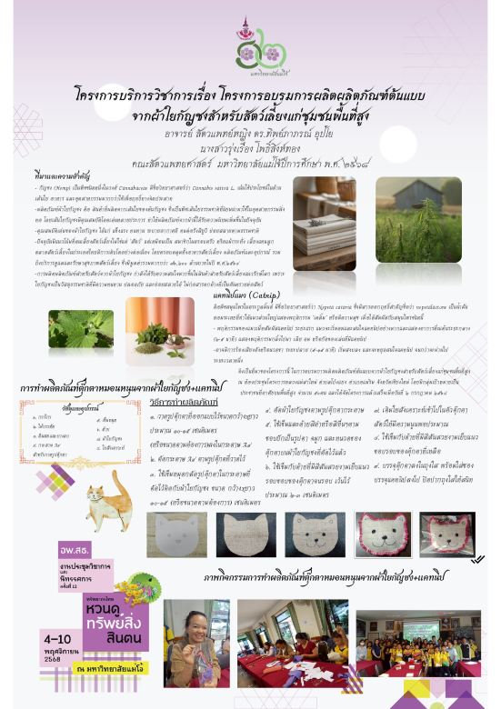 โครงการอบรมการผลิตผลิตภัณฑ์ต้นแบบจากผ้าใยกัญชง สำหรับสัตว์เลี้ยงแก่ชุมชนพื้นที่สูง