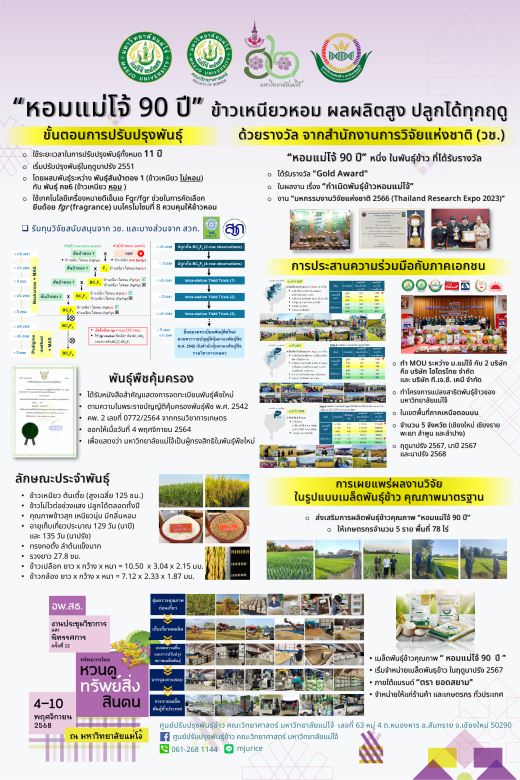 หอมแม่โจ้ 90 ปี ข้าวเหนียวหอม ผลผลิตสูง ปลูกได้ทุกฤดู