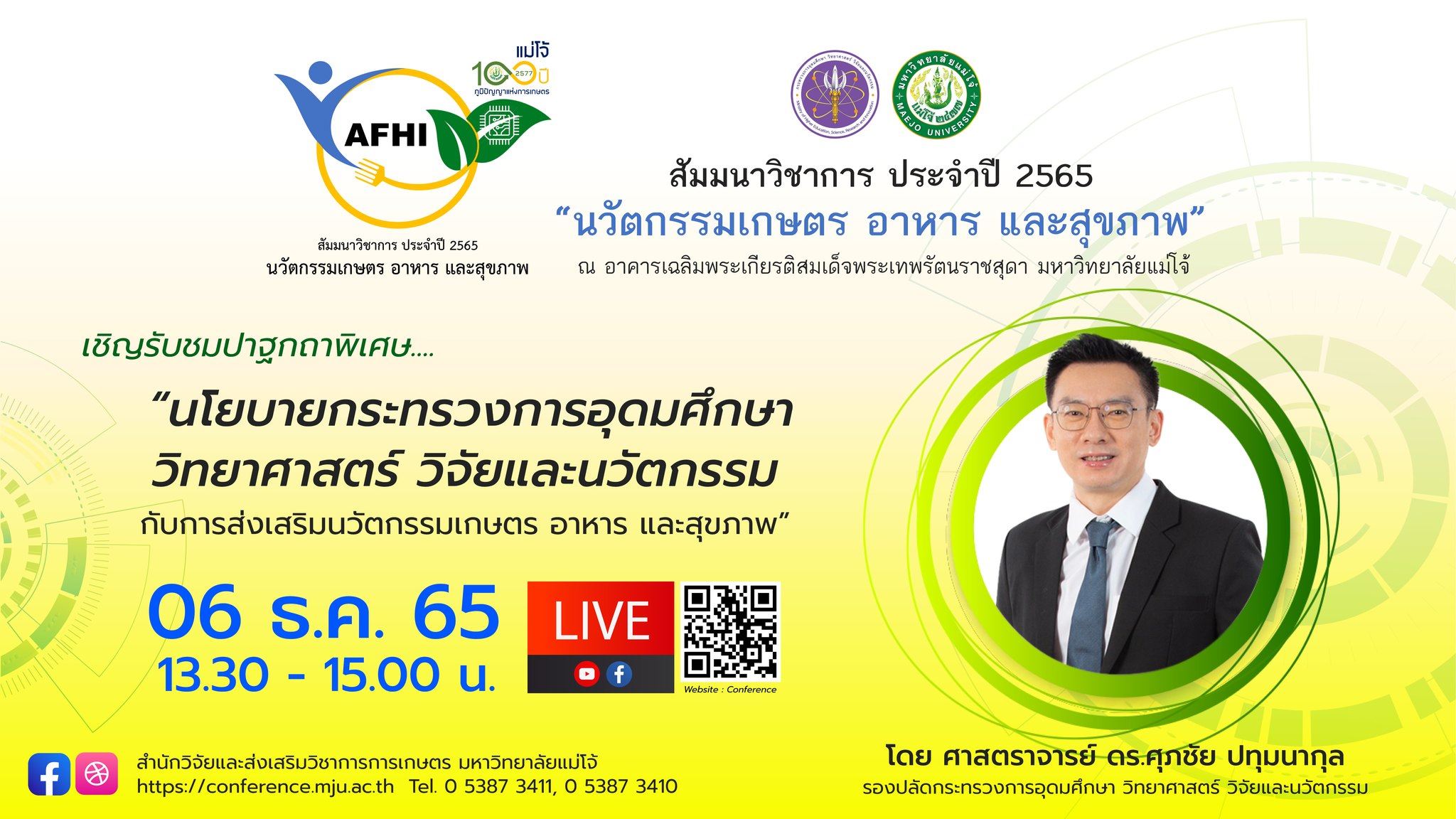 เชิญเข้าร่วมฟังปาฐกถาพิเศษ “นโยบายกระทรวงการอุดมศึกษา วิทยาศาสตร์ วิจัยและนวัตกรรม กับการส่งเสริมนวัตกรรมเกษตร อาหาร และสุขภาพ”
