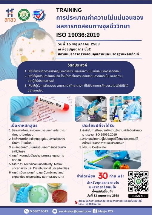 "การประมาณค่าความไม่แน่นอนของผลการทดสอบทางจุลชีววิทยา ISO 19036 : 2019"