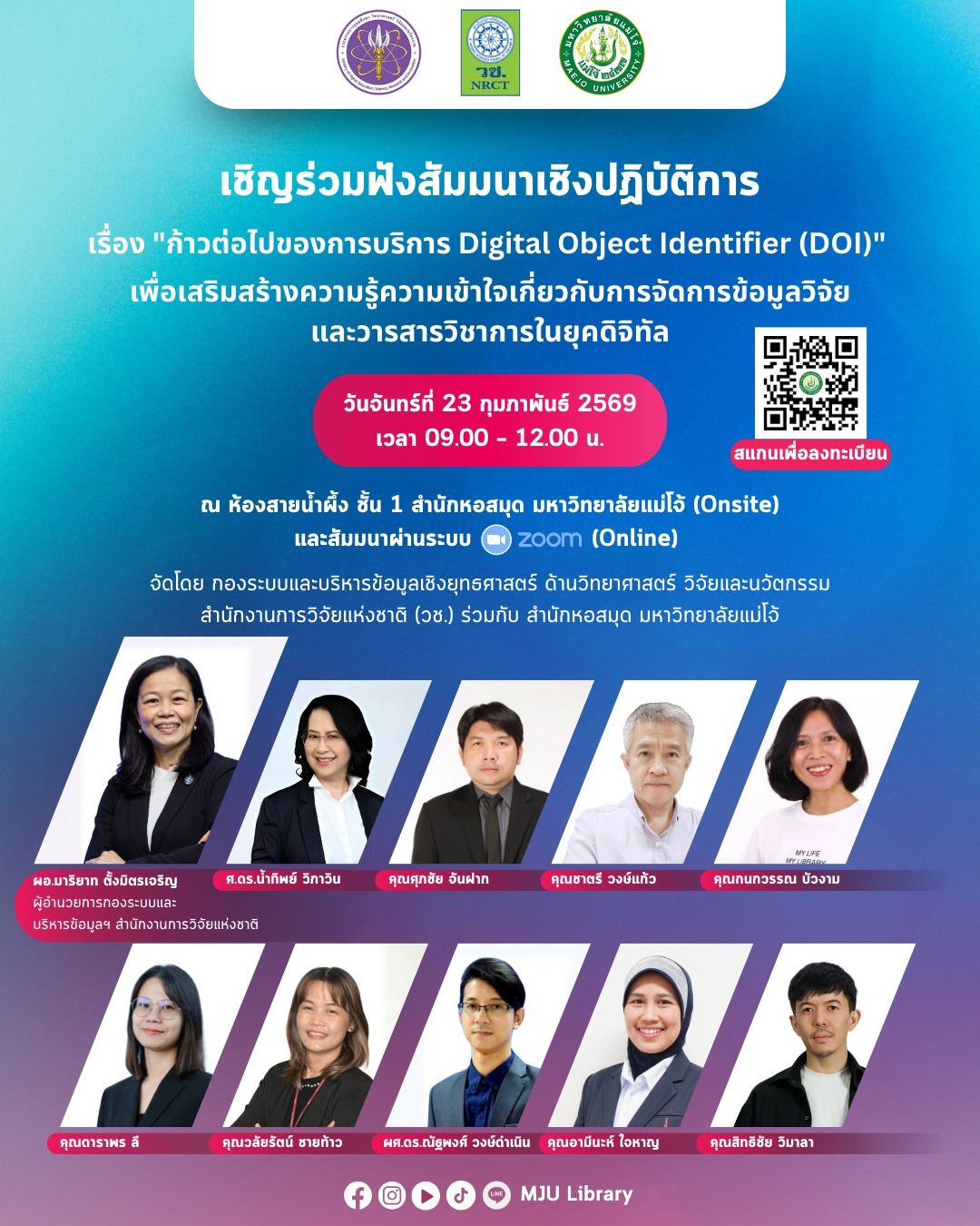 ภายใต้โครงการจัดตั้งศูนย์ Thailand DOI Service Center เพื่อเสริมสร้างความรู้ความเข้าใจเกี่ยวกับการจัดการข้อมูลวิจัยและวารสารวิชาการในยุคดิจิทัล
